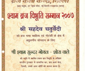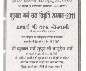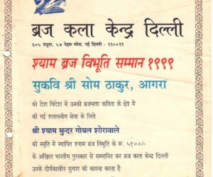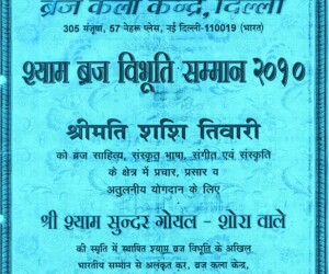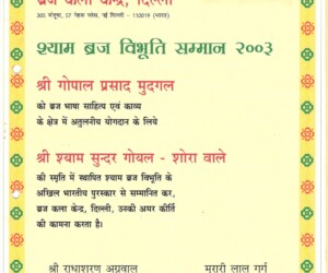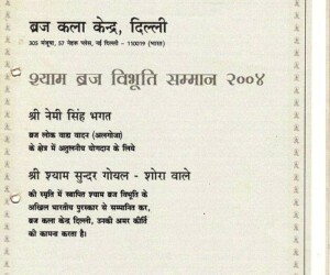- Braj Lok – Shri Ram Narayan Agrawal Abhinandan Granth-1991-92